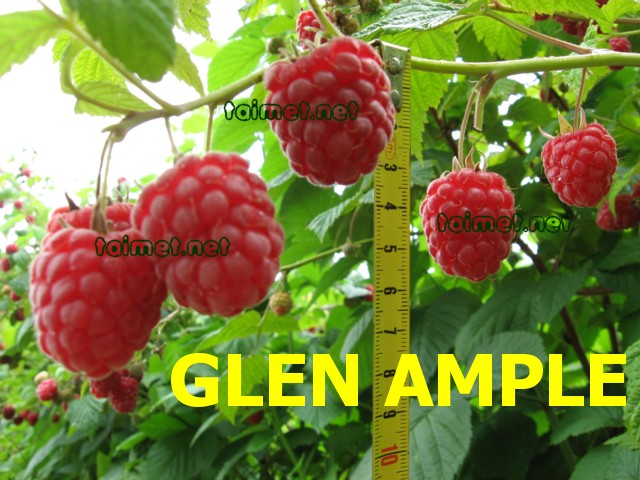 Kesävadelma. Superlajike Skotlannista. Hyvin voimakaskasvuinen ja elinvoimainen. Versot piikittömät. Olemme itse viljelleet lajiketta jo lähes 30v. ilman kemiallisia torjunta-aineita. Toimme käsittääksemme lajikkeen Suomeen ensimmäisten joukossa, ellei peräti ensimmäisenä. Tuottaa jopa 30mm:n suuruisia jättimarjoja. Pieniä marjoja on vain vähän. Marja sokeroituu hyvin vasta nautintakypsänä, joten keruuajankohta on kohtalaisen tarkka. Marjat kestävät hyvin kypsänäkin käsittelyä ja kuljetusta. Pinta ei myöskää pehmene helpolla sateisillakaan ilmoilla tai pakastemarjojen sulaessa, vaan ulkonäkö pysyy priimana. Varhainen syyshallakaan ei hevin vaikuta kasvustoon. Glen Ample -versosto vaatii lepotilaisena, varhain keväällä jokavuotisen parafiini- tai rypsiöljysumutuksen (5%) äkämäpunkkien talvimunien torjumiseksi. Käyttäkää emulgaattorina seoksessa esim. vähäistä määrää Fairya tms. Näin kasvusto pysyy terveenä ja tuotantokykyisenä. Tällainen käsittely on suositeltava kaikille vadelmalajikkeille.