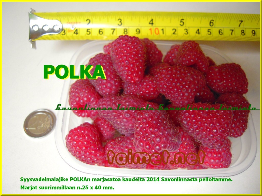 Syysvadelma. Lajike on jalostettu Puolassa. Voimakaskasvuinen. Versot vähäpiikkiset. Omasta viljelystä vasta 5. vuoden kokemus. Marja hienojakeinen, vadelma-aromi mieto. Marja on suuri, 25mm. Vuosisatotaso yltää lähelle Glen Amplea, mikäli ehtii täysin valmistua. Pääsatokausi avomaalla syysvadelmana yhden vuoden kierrolla viljeltynä on elokuu, pohjoisempana elo-syyskuun vaihde. Lajike Glen Amplea kestävämpi äkämäpunkkien vioituksille. Hallavioitusriski on suuri syksyllä, sadon valmistuminen saattaa jäädä kesken. Nautintakypsät marjat pehmenevät pinnaltaan herkästi. Keruuajan säätilan ollessa sateinen, sumuinen tai hallojen sattuessa, satotappiot ovat ilmeiset. Juuri marjan pinnan herkän pehmenemisen ja pilaantumisen vuoksi lajiketta on vaikea viljellä ammattimaisesti ilman kemiallisia torjunta-aineita. Luomuun mielestämme paljon Glen Amplea haasteellisempi lajike. Kuitenkin hyvä lajike jatkamaan kesävadelmien satokautta.